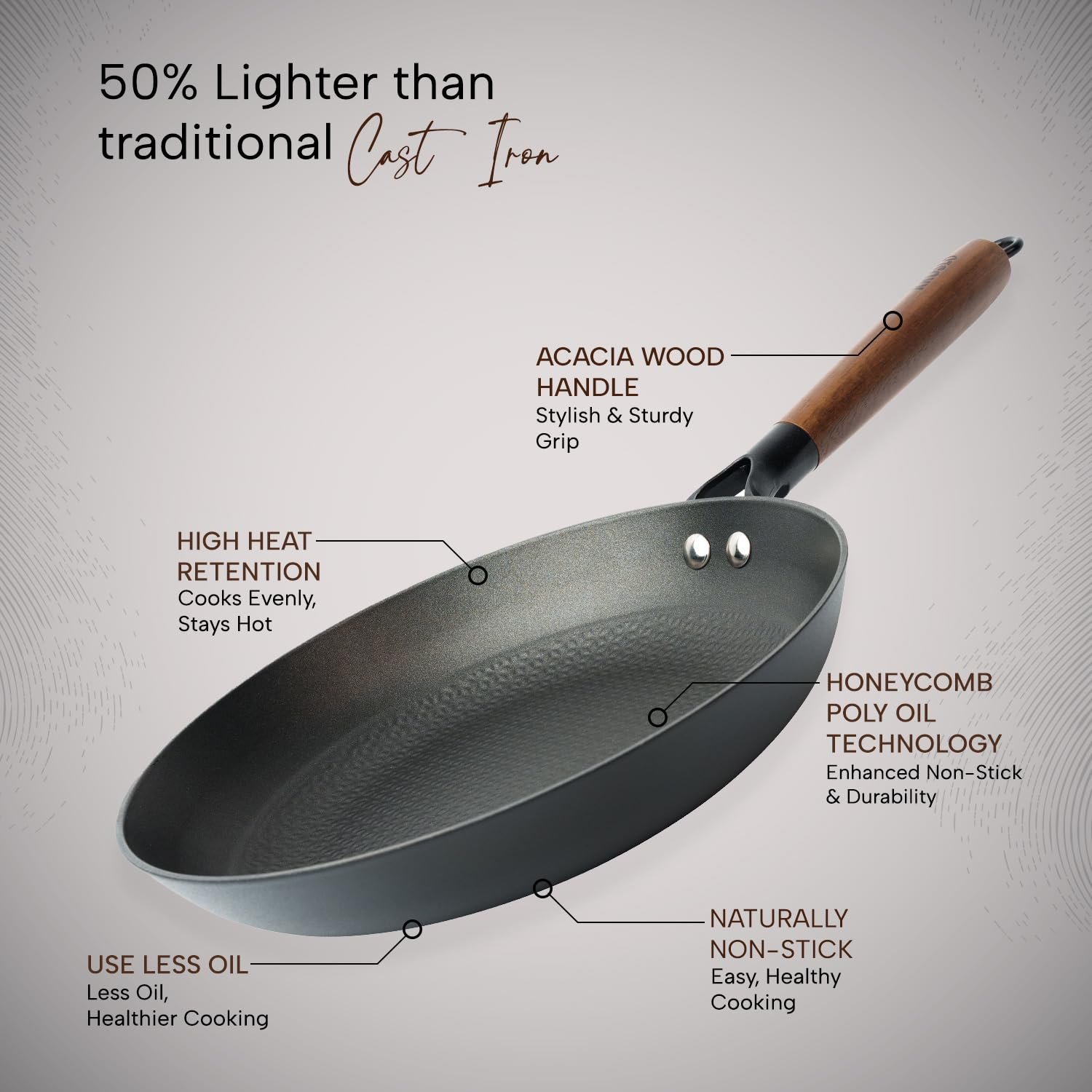 Lightweight Design | Superior Heat Retention | Non Stick Enamel Finish | Gas and Induction Compatible